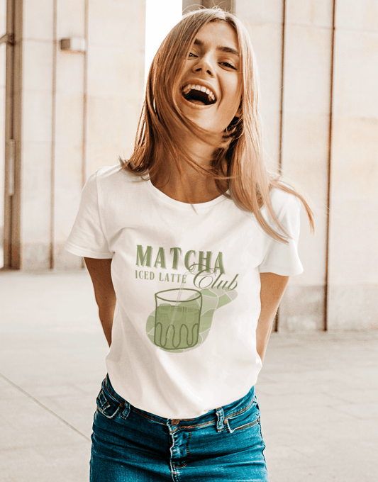 Matcha Iced Latte Club: Round Neck Tee (Female Fit)