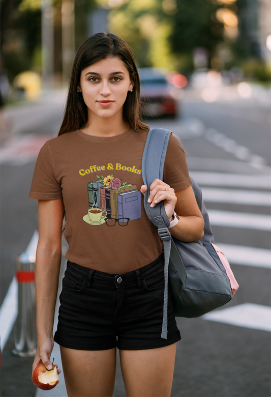 Coffee & Books: Round Neck Tee (Female Fit)